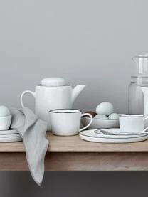 Die Geschirrserie Salt von Broste Copenhagen verzaubert mit ihrem rustikalem Handmade-Look. Die weiße Glasur des elegant geformten Geschirrsets von Broste Copenhagen ist von natürlichem Mineralsalz inspiriert. Der dezente, schwarze Rand wird händisch aufgetragen.